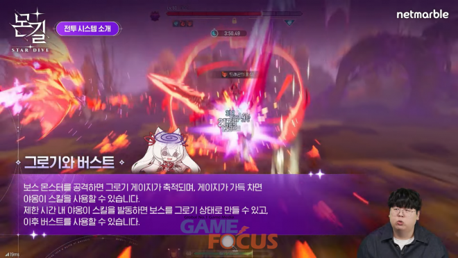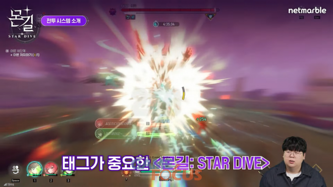 다음 순서로는 전투 시스템과 콘텐츠 소개가 이어졌다. 구독자 144만 명의 유튜버 '테스터훈'이 출시에 앞서 게임을 미리 시연하며 그로기 게이지를 채워 사용하는 '버스트', 제한 시간 내에 몬스터와 보스를 처치하는 '차원 균열', 스토리 진행 중 만났던 보스들과 다시 전투할 수 있는 '토벌', 몬스터들을 키링 형태로 만들어 캐릭터에게 장착하는 '몬스터링' 등 핵심 특징에 대해 간단히 소개했다.