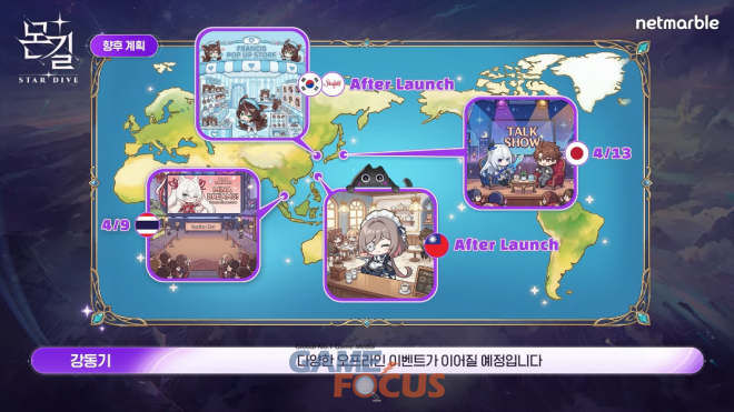 넷마블은 4월 9일 태국 프레스 컨퍼런스를 시작으로 4월 13일 '몬길' 참여 일본 성우진 및 인플루언서들이 함께하는 론칭 라이브 방송, 4월 15일 대만 콜라보 카페, 국내 팝업 스토어 및 굿즈 이벤트 등 오프라인에서도 이벤트를 전개할 예정이다.