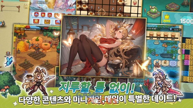 이와 함께 이벤트 기간마다 ‘지뢰 찾기’, ‘블록 블래스트’, ‘냥이 놀이터’ 등 다양한 미니게임이 순차적으로 진행되며, 상시 콘텐츠 ‘한 번에 그리기’도 제공된다. 짧은 플레이 시간만으로도 부담 없이 즐길 수 있는 콘텐츠 구성이 특징이다.