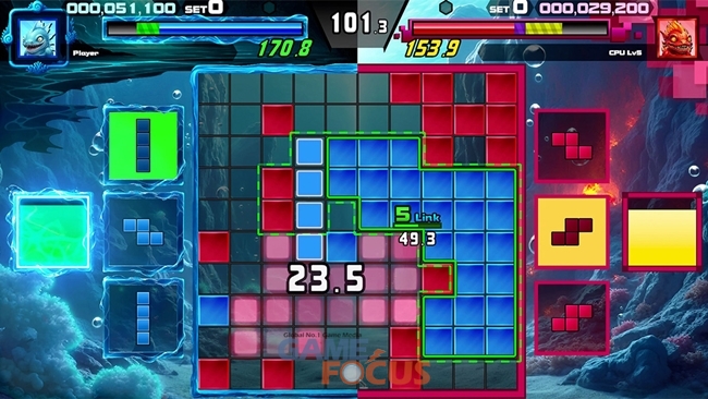 '시카큐'는 판단력과 반응 속도로 승부를 겨루는 1대1 퍼즐게임이다. 플레이어는 10x10 보드에서 같은 색상 블록을 연결해 점수를 얻는다. 획득한 점수만큼 상대의 체력을 줄일 수 있다.