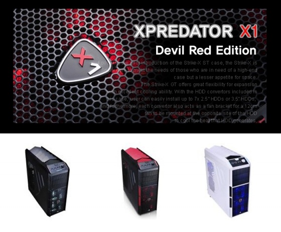 이번에 출시된 'X프레데터' 제품은 블랙 베이스에 화이트 LED 팬이 장착된 데빌 블랙과 붉은색 LED 팬과 함께 내부 프레임 역시 붉은색으로 도색한 데빌 레드, 화이트 베이스에 푸른색 LED를 장착한 데빌 화이트까지 총 3가지 색상이 준비 되어 있다.