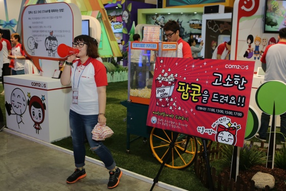 금일 컴투스 부스에서는 관람객들이 총 100여 대 규모의 태블릿 PC에서 컴투스 게임을 시연했으며, 이벤트에도 큰 관심을 보였다.