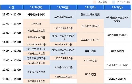 세계 최대의 사이버 게임 문화 축제 월드사이버게임즈(World Cyber Games, 이하 WCG)는 오는 11월 29일(목)부터 12월 2일(일)까지 중국 쿤산에서 열리는 'WCG2012 그랜드 파이널'의 생중계 방송 일정을 금일(27일) 공개했다.