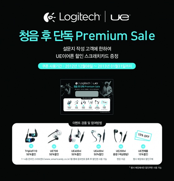 희망고객은 해당지점에 방문해 로지텍 UE제품을 청음한 후 100% 당첨 스크래치 카드 이벤트 참여 또한 가능하다. 스크래치 이벤트 참여자에게는 1등 트리플 파이 10 50% (5명), 2등 UE700 50% (5명), 3등 UE600vi 50%(10명), 4등UE400vi 50% (5명) 할인 쿠폰이 주어지며, 5등 에게는 UE200vi (25명)이 경품으로 제공된다. 또한 6등에게는 해당 지점에서 얼티밋이어 전 제품의 15% 할인 혜택이 주어진다.