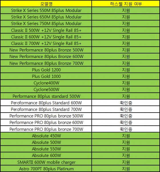 인텔 '하스웰' 프로세서 지원 마이크로닉스 파워서플라이 리스트