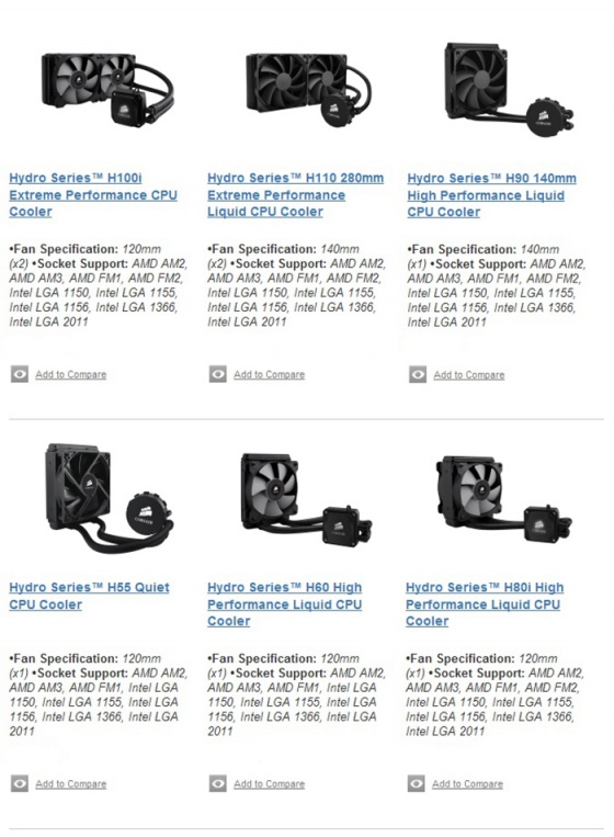 하스웰의 신규 CPU 소켓 규격인 LGA1150을 지원하는 H시리즈의 제품은 가장 최근 출시된 140mm 규격의 대형 라디에이터가 장착된 H110, H90과 DSP 디지털 기술로 간편한 시스템 관리가 용이한 H80i, H100i, 중저가 보급형 라인업인 H60 2013과 H55 제품까지 가격대별, 성능별로 다양하게 준비되어 있다.