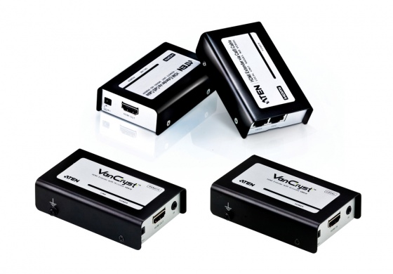 IR 컨트롤러가 포함된 에이텐 HDMI 연장기 VE810은 2개의 Cat 5e 케이블을 사용해 HDMI 소스를 최대 60m 거리에 떨어진 디스플레이에 그대로 뿌려준다. 포함된 IR 컨트롤러는 멀리 떨어진 곳에서 로컬 장치를 제어하는 역할을 한다.