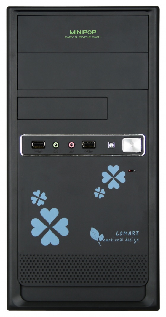 컴아트 미니팝 S431은 덩치만 크고 비효율적인 데스크톱의 틀에서 벗어나 크기는 줄이고 실용성을 강조한 점이 특징이다. 블랙 색상과 직선 라인 위주로 깔끔하게 정리해 작지만 강한 느낌을 전달하며, 폭 175mm, 높이 355mm, 깊이 376mm로 작지만 안정적인 비율을 갖췄다. 여기에 버튼을 전면에 깔끔하게 배치했다.