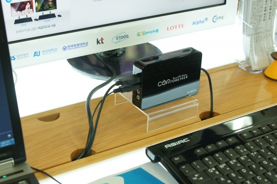 컴투게더는 한 대의 PC로 최대 네 명까지 쓸 수 있게 해주는 PC 공유기로 인원 수에 맞는 PC 전력량과 비교되지 않는 수준의 전력 절감 효과를 가지고 있다는 점이 특징이다. 엔텍 측은 컴투게더 4인 사용 기준 월 500리터 용량 냉장고 두 대와 맞먹는 전력 절감 효과가 있다고 강조했다.