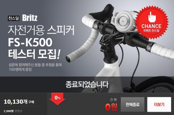 브리츠는 금일(13일) 출시 예정인 자전거용 거치 스피커 FS-K500의 2차 베타테스터 모집이 참여자들의 관심 속에 성공적으로 종료되었다고 발표했다.