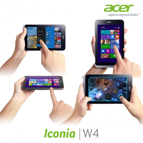 한 손에 들어오는 8인치 태블릿인 ‘아이코니아 W4’는 어느 각도에서나 선명하게 보이는 IPS HD 디스플레이(1280x800 해상도)와 5포인트 멀티 터치를 지원하는 스크린에, 에이서만의 제로 에어 갭(Zero Air Gap) 기술로 빛 번짐 없는 더욱 밝은 화면을 제공한다. 또한 모니터 또는 대형TV와 연결해 풀FD화면까지 듀얼 모니터로 활용이 가능한 마이크로 HDMI 포트는 물론, 마이크로 USB, 블루투스 4.0 등의 다양한 입출력 포트까지 갖춰 사용성을 강화했다.