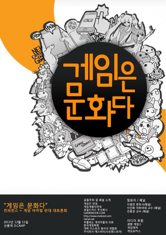 '게임은 문화다'라는 제목의 게임 편견 타파를 위한 강연 및 토론회가 오는 11일, 서울 D.Camp에서 개최된다. 성균관대 김정태 교수와 와일드카드 김윤상 대표가 발의해 게임인들이 힘을 합쳐 여는 이 행사에는 게임인 연대, 게임개발자연대, 한국게임학회 등 다양한 단체가 참여하고 있으며 이병찬 변호사, 이인화 교수, 진중권 교수 등이 발표자 및 패널로 나서 게임 탄압에 대해 이야기할 예정이다.