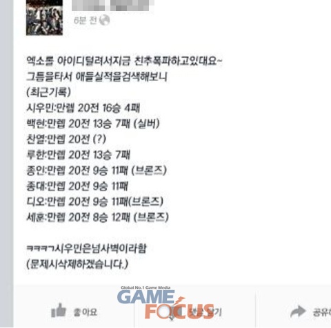 국민 아이돌 엑소(EXO) LOL 게임 중 욕설 파문, 진짜?