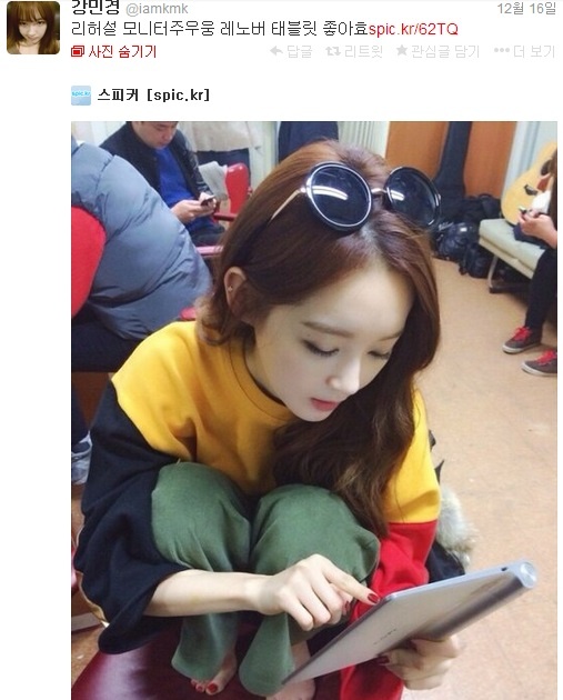먼저, 레노버의 공식 모델인 다비치의 강민경은 자신의 트위터(https://twitter.com/iamkmk)에 레노버 YOGA TABLET으로 리허설 모니터링을 하는 모습을 SNS에 올려 눈길을 끌었다.