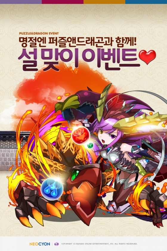 네오싸이언은 금일(24일) 겅호온라인엔터테인먼트에서 개발한 오리지널 퍼즐 RPG ‘퍼즐앤드래곤’이 설 맞이 이벤트를 진행한다고 밝혔다.