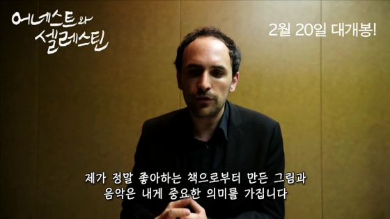 한 편의 아름다운 동화로 따뜻한 감성을 전하는 프랑스 명품 애니메이션 '어네스트와 셀레스틴'이 개봉 직후, 포털 사이트 네이버와 다음을 비롯하여 CGV, 롯데시네마 등 극장 예매 사이트에서 동시기 개봉작 중 유일하게 평점 9점대를 유지하며 2월 극장가 최고의 웰메이드 애니메이션으로 주목 받고 있는 가운데, 감독 벤자민 레너가 한국 팬들에게 보내는 메시지가 담긴 특별 영상을 공개하여 관심을 모으고 있다.