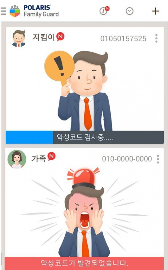 패밀리가드는 이번 업데이트를 통해 신종 스미싱 푸쉬 알림 기능 추가, 안드로이드 킷캣 버전 악성 문자 수신 삭제 가능, 카카오톡 시작하기 계정 옵션 추가 및 보안 진단 현황 내역 인터페이스가 개선됐다.