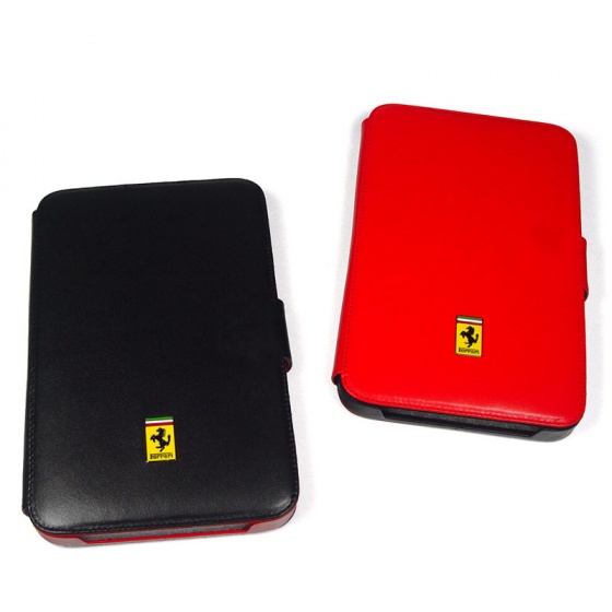 페라리 갤럭시탭 가죽케이스는 모두 최고급 천연가죽으로 제작되었으며, 정면에 페라리를 상징하는 금속엠블렘과 음각로고가 뒷면에 들어가 이탈리아 명품브랜드 ‘페라리’의 고급스러운 느낌을 표현하고 있으며, 정품 홀로그램이 포함되어 있다.