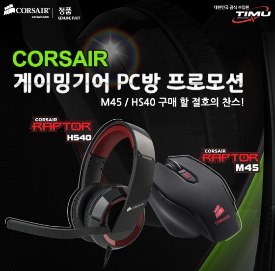 이번 PC방 프로모션은 '리그 오브 레전드(LoL)' SKT T1 프로게임단 후원 이후 최근 누리꾼들의 관심이 집중되고 있는 페이커(이상혁 선수) 마우스 'CORSAIR RAPTOR M45'와 'CORSAIR RAPTOR HS40 헤드셋'을 대상으로 진행된다.