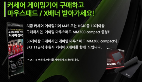 M45 또는 HS40을 10개 이상 구매 시 1만원 상당의 'CORSAIR MM200 COMPACT 마우스 패드'를 1+1으로 무상 증정한다. 또한, 50개 이상 구매 시에는 매장 내부 또는 외부에 설치할 수 있는 X배너를 제작 지원하여 제공한다. 물론 이 경우에도 'MM200 COMPACT'는 무상 지원된다.