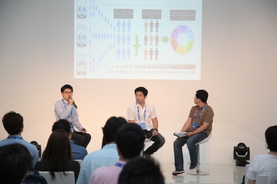 또한 세 명의 패널을 두고 데이터를 기반으로 집행하는 과학적인 마케팅의 핵심인 모바일 수치 트래킹을 활용한 마케팅 효과 극대화에 대한 열띈 토론이 이루어졌다. 대표적인 모바일 트래킹 툴 인모비 애널리틱스 담당 박민우 과장, MAT의 해스오퍼스 브라이언김 지사장, 아이지에이웍스 애드브릭스를 개발한 현동우 개발실장은 "1억을 쓰고도 어떤 효과를 냈는지 모르는 시대는 이제 갔다"며 "모바일 광고의 장점은 비용 대비 효과를 정확하게 계산할 수 있다는 것"이라고 입을 모았다.
