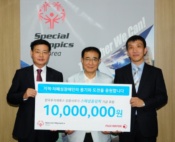 한국후지제록스는 7일 오전, 서울 종로구 소재의 한국스페셜올림픽위원회 사무실에서 양희강 한국후지제록스 전무, 송동근 한국스페셜올림픽 위원회 사무총장 등이 참석한 가운데 기금 전달식을 가졌다.
