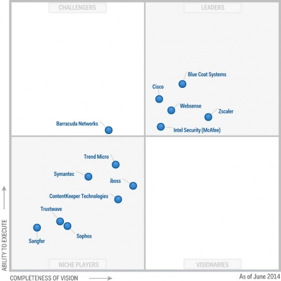 블루코트코리아(대표 김기태)는 14일, 시장조사기관인 가트너의 매직 쿼더런트(Magic Quadrant for Secure Web Gateways, 2014) 보고서에서 7년 연속 '보안 웹 게이트웨이 대표 기업(리더 쿼더런트)'으로 선정되었다고 밝혔다.