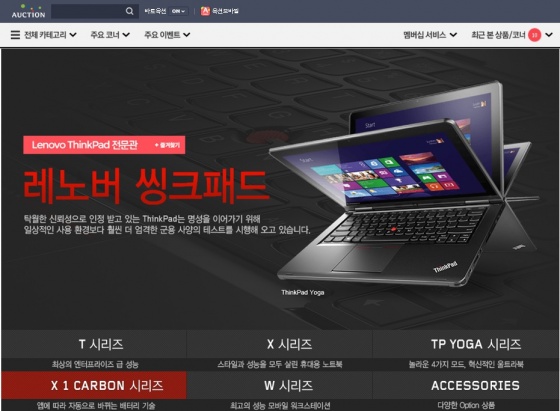 씽크패드 브랜드관은 T, X, 씽크패드 YOGA, W, X1 카본 시리즈, 총 6개의 카테고리로 나뉜다. 레노버 고객들은 원하는 제품을 각각의 카테고리에서 손쉽게 검색 할 수 있고 제품 관련 소식을 빠르게 접할 수 있다.