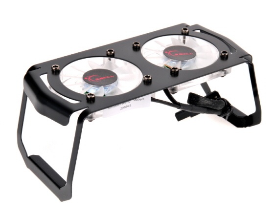 2개의 50mm 블루 LED 듀얼 FAN 장착과 3500의 높은 rpm으로 풍부한 풍량을 제공하여 뛰어난 쿨링 성능과 함께 미려한 튜닝 효과 역시 제공하는 터뷸런스 II 메모리 쿨러 제품이 동봉되는 지스킬의 이번 트라이던트는 2000mhz 로 작동하는 PC-16000 제품으로서 4GB (2Gx2)킷과 6GB (2Gx3)킷으로 모두 두 가지 제품이 해당된다.