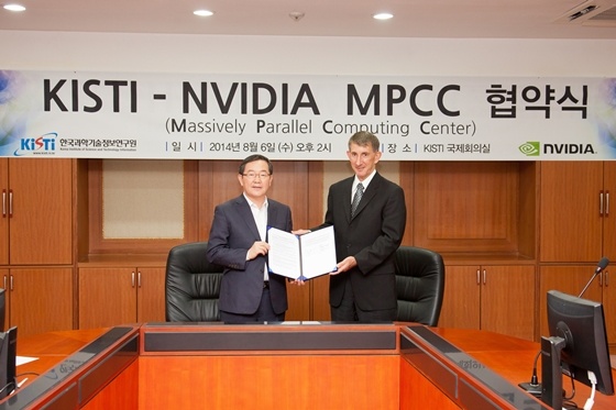 비주얼 컴퓨팅 분야 선도 기업 엔비디아(엔비디아 코리아 지사장 이용덕)가 지난 6일, 한국과학기술정보연구원(원장 박영서, 이하 KISTI) 대전 본원에서 엔비디아-KISTI 초병렬컴퓨팅센터(Massively Parallel Computing Center, MPCC) 설립을 위한 업무협약을 체결했다.
