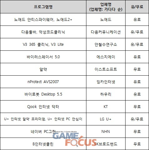 ※ 설치 시 동의․이용약관이 없는 등 필수 항목이 누락되거나, 실시간 탐지 기능을 지원하지 않은 프로그램은 제외