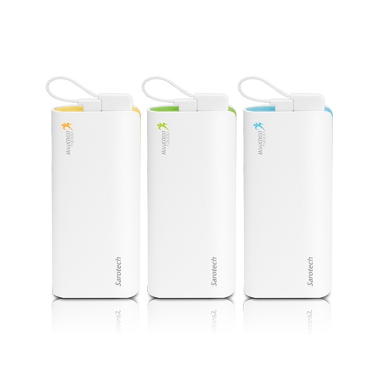 특히, 이 제품은 초대용량 배터리답지 않게 투박한 디자인 대신 산뜻한 색감을 입히고, 여기에 견고하면서 강인한 이미지를 덧입혀 '마라톤'이라는 제품명을 붙였다. 인체공학적 곡면 디자인에 컴팩트한 사이즈로 손에 쥐는 그립감이 뛰어나며, 화이트톤에 파스텔을 입힌 모던하고 감각적인 디자인은 다양한 배터리 제품들 중에서 소비자의 눈길을 사로잡기에 충분하다. 색상은 화이트&블루, 화이트&그린, 화이트&오렌지의 산뜻한 3가지 컬러로 제공되어 소비자의 취향에 맞게 선택해 구매할 수 있다.