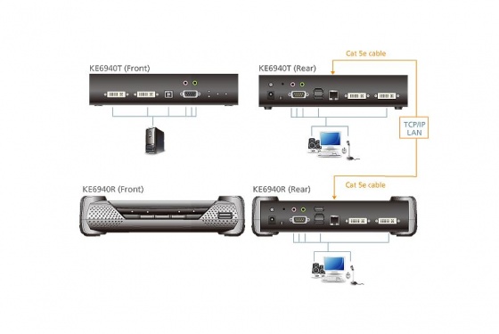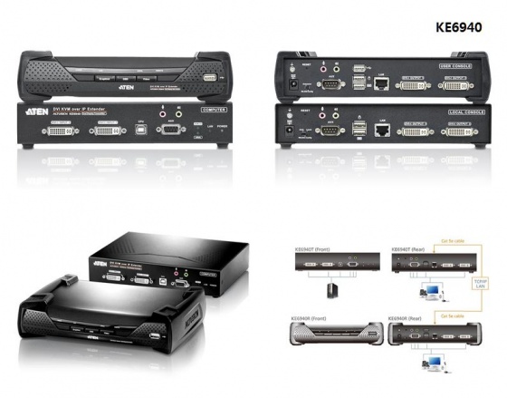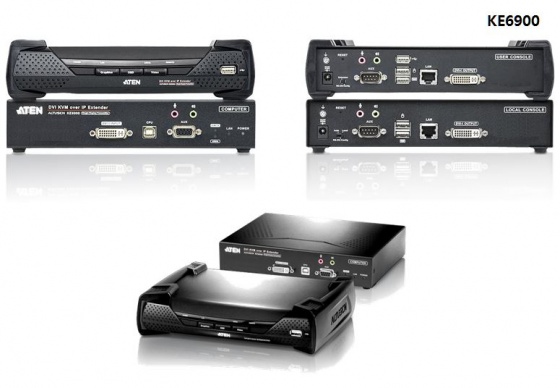 에이텐 KE6900, KE6940은 Over IP KVM 솔루션 형태의 제품으로, 사용자는 IP기반의 네트워크를 통해 원격지에 위치한 USB 디바이스(USB 키보드, USB 마우스, DVI 모니터)를 콘트롤 할 수 있다.