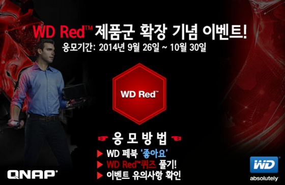 WD(한국 지사장 조원석)가 'WD Red 하드디스크(5-6TB 및 WD Red Pro)' 제품군 확장 기념 페이스북 이벤트를 26일부터 10월 30일 까지 진행한다.