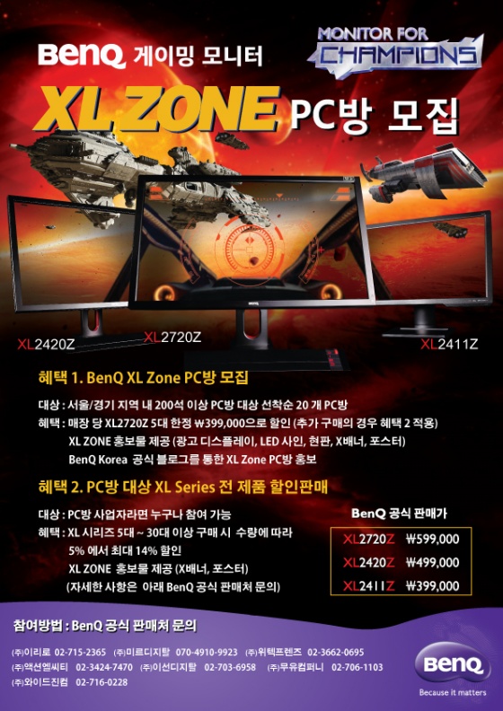 벤큐의 이번 PC방 XL ZONE 프로모션의 참여 신청 및 문의는 벤큐 공식 대리점에서 가능하다.