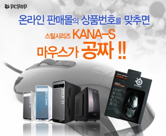 피씨팝 컴퍼니(대표 안용모)는 쇼핑몰에 등록되어 있는 피씨팝 제품 상품 번호를 등록하면 게이밍 마우스로 유명한 스틸 시리즈 'KANA-S'를 경품으로 제공하는 이벤트를 진행한다고 금일(7일) 밝혔다. 이번 이벤트가 진행되는 제품으로는 미들타워 '뷰'와 미니타워인 '아톰'으로 출시 이후 많은 사랑을 받고 있는 제품이다.