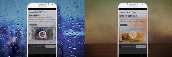 삼성은 방수, 방진 기능을 갖춘 삼성 갤럭시 S5를 사우디아라비아에서 런칭하면서 인모비를 통해 모바일 광고 캠페인을 집행했다. 인모비는 스마트폰 사용자의 현재 위치와 지역의 날씨에 맞춤화된 메시지를 보여주는 날씨/지역 타겟팅 광고를 집행하였다. 비가 오는 지역에 있는 사용자에게는 제품의 방수 기능을 강조하는 광고가 보이고, 중동 특유의 모래먼지가 많이 날리는 곳에서는, 방진 기능을 소개하는 광고가 보이는 기술이다. 연관성 높은 메시지로 사용자들과 공감대를 형성하여 2만 5천명 이상의 현지 모바일 사용자들의 반응을 이끌어냈고, 삼성의 기존 목표 수치를 30% 초과하는 성공적인 캠페인으로 마무리했다.