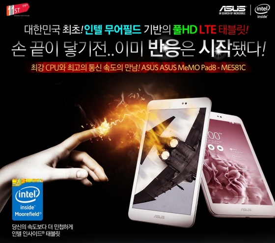 ASUS(에이수스, kr.asus.com)가 인텔 무어필드 기반의 초경량, 초슬림 8형 풀HD LTE 타블렛 미모패드 8(ME581CL)을 출시하고 11번가 단독 기획전을 통해 300대 한정 할인 판매 이벤트를 진행한다고 9일 밝혔다.