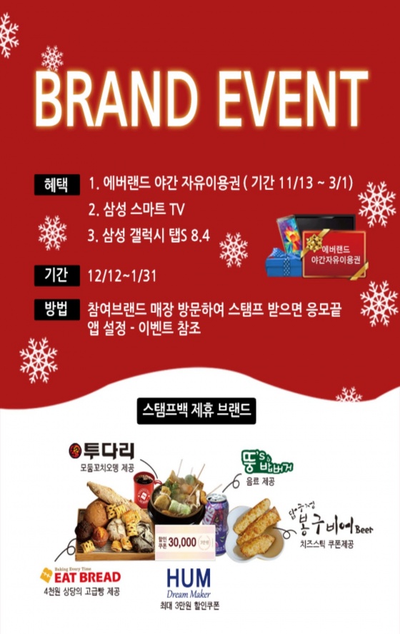 투다리는 '모듬꼬치오뎅 쿠폰', 잇브레드는 '고급빵 쿠폰', 흄(HUM)은 '최대3만원 할인 쿠폰', 봉구비어는 '치즈스틱 쿠폰', 뚱스밥버거는 '음료수 쿠폰'을 제공한다.