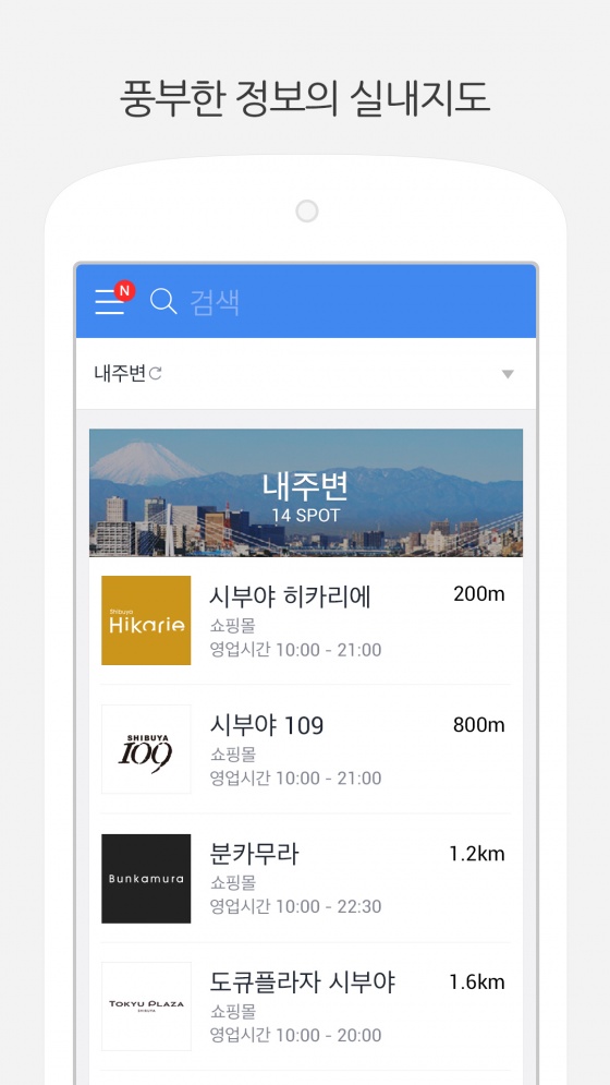 지난 11월 12일 첫 서비스를 시작한 라인 실내지도 서비스는 시부야, 신주쿠, 롯뽄기, 오다이바, 우에노, 이케부쿠로 등 도쿄 및 도쿄 근교 내에 위치한 유명 상업시설의 실내 길찾기 정보를 한국어, 일어, 영어, 중국어(간체, 번체) 등 5개 국어로 서비스를 진행해, 일본 이용자는 물론, 여행객들의 쇼핑센터 활용 편의를 지원하며 좋은 반응을 얻고 있다.