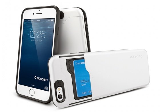 슈피겐의 아이폰6/아이폰6플러스 '슬림아머 카드슬라이더'는 자주 사용하는 신용카드나 버스카드를 최대 2장까지 내부에 보관할 수 있는 케이스다. 케이스를 벗겨 카드를 수납하는 대다수의 제품과는 달리 '슬림아머 카드슬라이더'는 후면 슬라이드 커버를 아래로 내려만 주면 카드를 쉽게 넣고 꺼낼 수 있어 사용이 매우 편리하다.