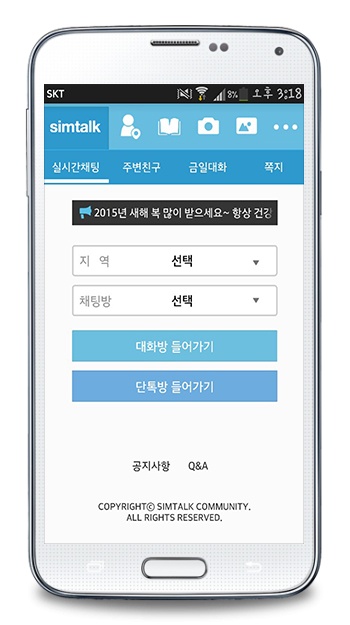 게다가 단체채팅(단톡방)이 가능하다는 것도 '심톡'의 장점으로 꼽을 수 있다. '심톡' 사용자는 회원이 만든 단톡방에 참여할 수도 있고 직접 단톡방을 개설할 수도 있다. 방장이 되면 방장만의 권한을 행사할 수 있는데, 단톡방의 제목을 정하거나 인원 수를 지정할 수도 있다. 원하는 사람만 초대하고 모일 수 있도록 단톡방에 비밀번호를 걸어두면 그들만의 채팅도 가능하다.