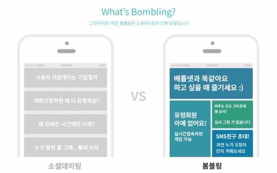 '그린라이트 게임'을 표방하며 평범한 소셜데이팅 앱과의 차별화를 주장하는 '봄블링'은 기존 소개팅 앱을 답습하지 않은 새로운 모델을 제시했다. 데이팅에 게임요소를 더해 사용자가 능동적으로 앱을 즐길 수 있게 만든 것이다.