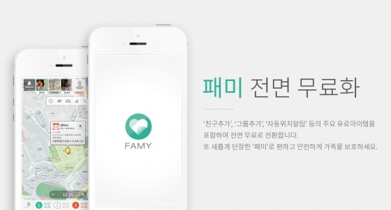 (주)스파코사(대표 조우주, Spacosa.com)는 가족 안심서비스 앱 '패미'의 모든 서비스를 금일(26일)부터 무료화하기로 결정했다.