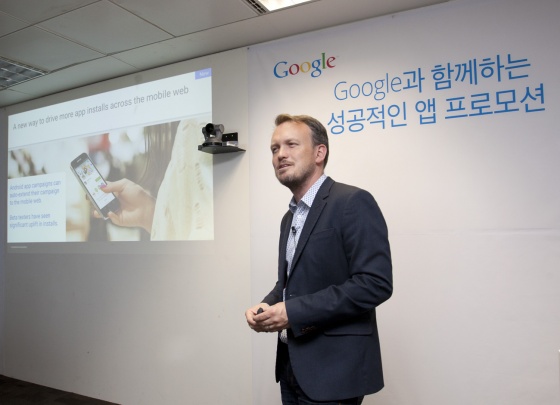 구글코리아(www.google.co.kr)는 오늘(26일) 역삼동 구글코리아 사무실에서 조너선 알퍼니스 글로벌 모바일 광고 제품 총괄과 함께 기자간담회를 갖고, 모바일 앱 관련 트렌드와 한국 앱 개발자의 성공 사례를 소개했다. 이와 함께 한국 앱 개발자들이 보다 효율적으로 신규 사용자를 늘리고 기존 사용자들의 앱 이용을 확대시키기 위한 모바일 앱 프로모션 솔루션도 선보였다.