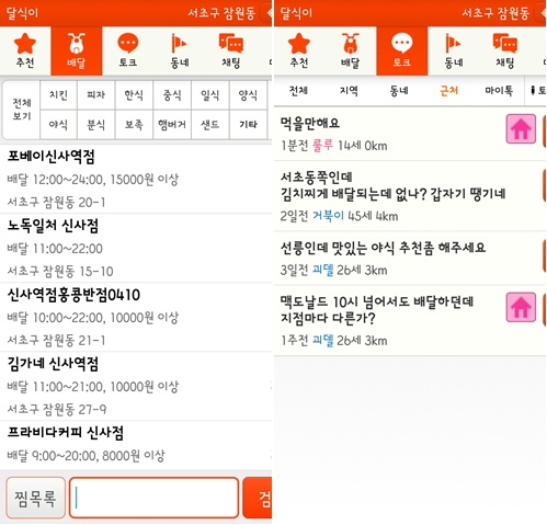 더불어 채팅 기능 및 위치기반 시스템을 도입해 지역 주민과 맛집 추천을 주고받을 수도 있다. 가까운 위치의 사람과 허심탄회하게 이야기 나누며, 야식이나 분식 등 배달업소를 추천받는 것은 물론 지역 정보를 공유하고, 친구도 사귈 수 있다.