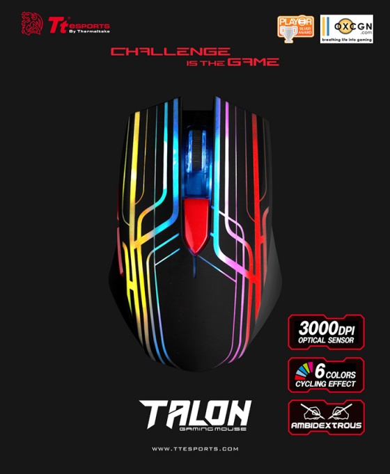 탈론(TALON)게이밍 마우스는 PLAT 3r.net, OVERCLOKERSCLUB 등 해외 유수의 PC 리뷰사이트에서 실용적이고 합리적인 가격대의 게이밍 마우스로 호평을 받은 옵티칼(OPTICAL) 마우스로 3000DPI의 아바고(Avago)센서 사용 및 500만번 이상 수명의 높은 신뢰도를 보여주는 옴론(OMRON)스위치 적용으로 기본적인 성능에도 충실하다.
