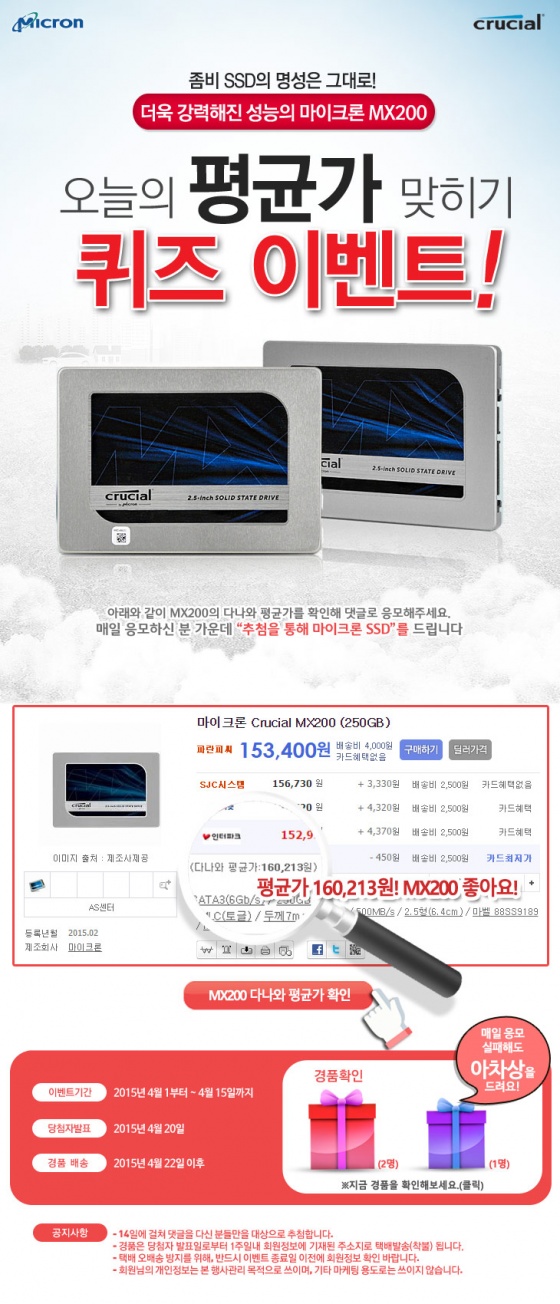 마이크론 크루셜 SSD 국내공급을 담당하는 대원CTS 관계자는 “크루셜 SSD 시리즈의 성공과 새 라인업 출시를 기념하고, 그간의 성원에 보답하는 차원에서 통 큰 이벤트를 기획하게 됐다”고 밝히며, “앞으로 대원CTS는 크루셜 SSD의 국내공급자로서 만족스러운 성능 외에 더욱 탄탄한 사후서비스, 고객 감사 이벤트를 통해 고객과의 소통을 강화해 나아갈 것”이라 밝혔다.