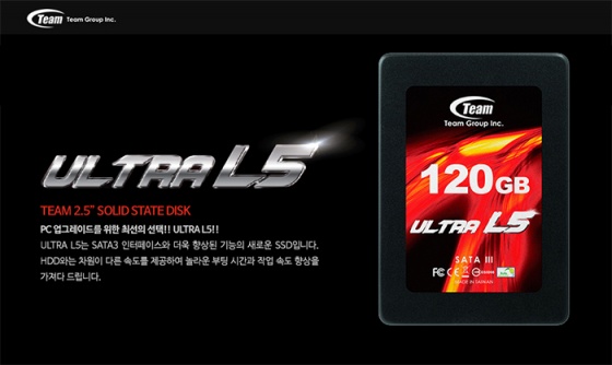 팀그룹 ULTRA L5 시리즈는 이전에 출시했던 L2, L3에서 성능이 향상된 제품이며, 소비자의 PC 사용패턴에 맞추어 적절히 선택할 수 있도록 120GB, 240GB, 480GB로 다양하게 출시된다. 특히 SATA3 인터페이스를 지원하고, 120GB 제품의 경우 550MB/S의 읽기 속도와 290MB/s의 쓰기 속도를 기록하여 하드디스크 장착 컴퓨터보다 1.8배 더 빠른 속도를 체감할 수 있다.
