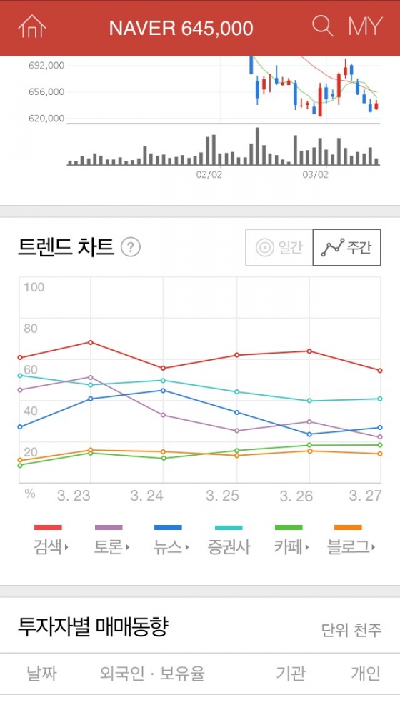 특히 트렌드 차트에서 토론, 블로그, 카페, 뉴스를 클릭했을 때 카테고리 별 관련 글들을 리스팅 해 보여줄 예정이라 사용자들은 트렌디한 주식 종목 정보를 다양한 기준으로 확인할 수 있다.